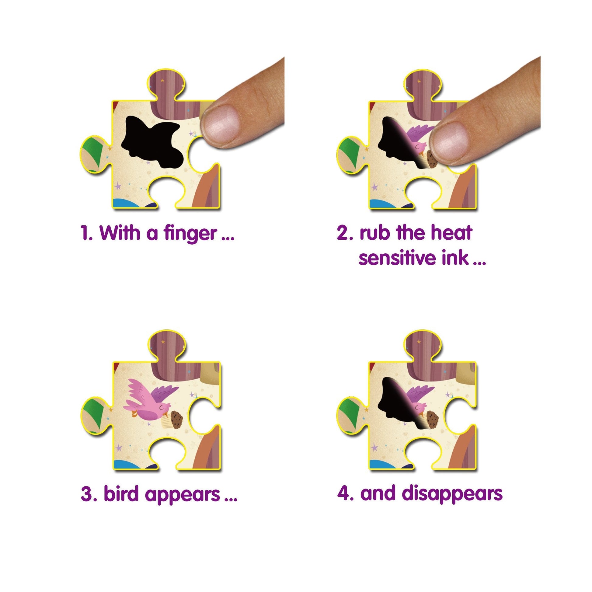 Exciting 50-piece puzzle with 15 magic patches. One of a range of puzzles featuring cross sections of a Fairy Palace, Haunted House, Pirate Ship and Castle. Children will enjoy making these fascinating scenes, then rubbing the heat sensitive ink to discover what is hidden beneath.